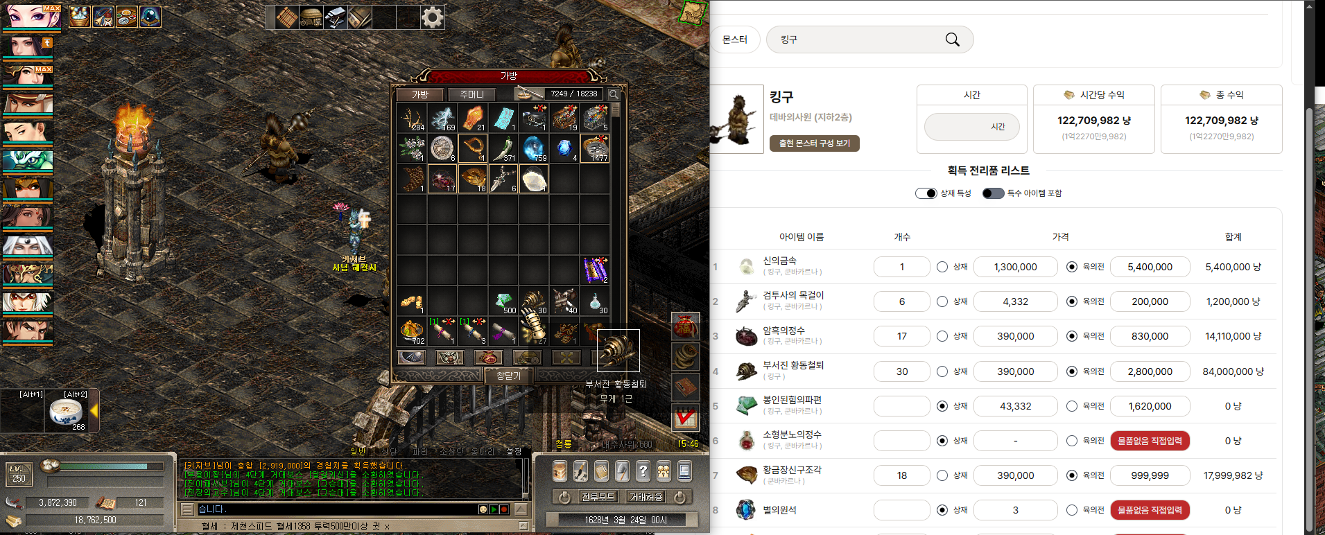 그냥 봉힘파만 9억 가까이 된다 ( 청룡 기준 1750 X 50 = 8.7억)