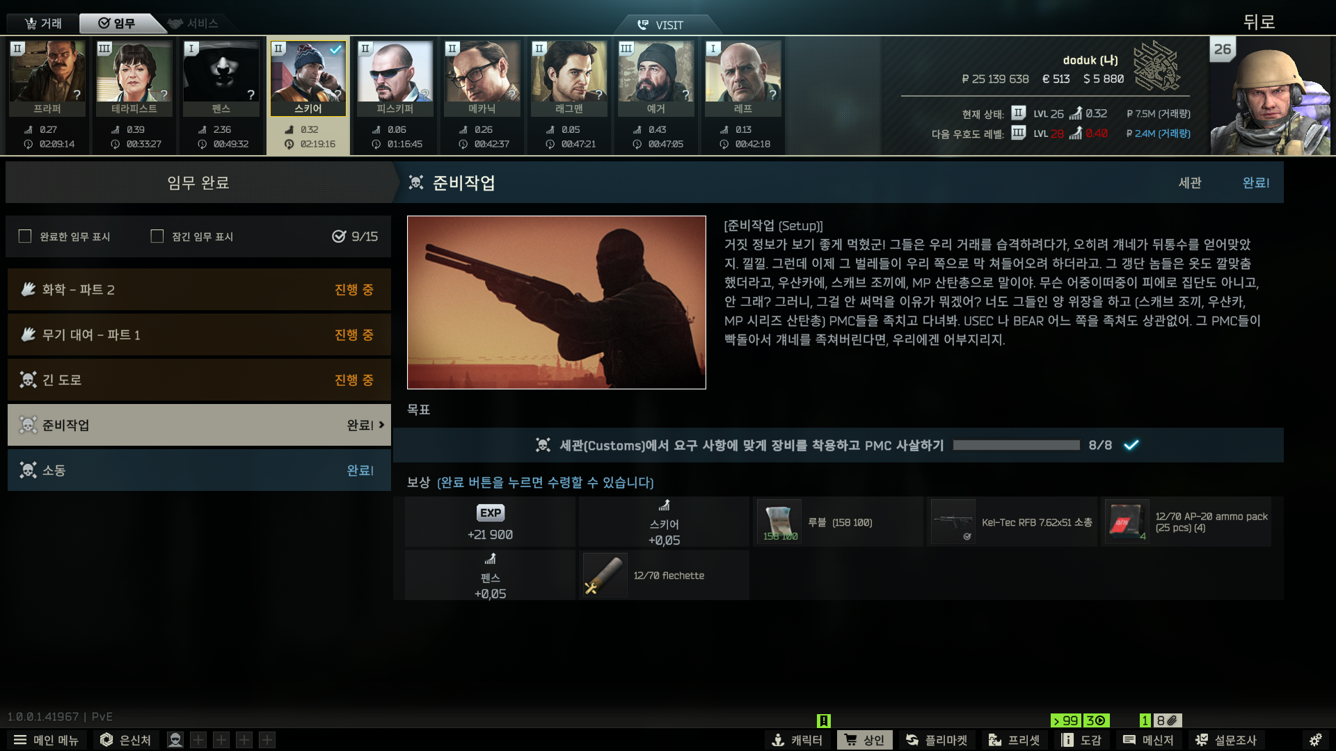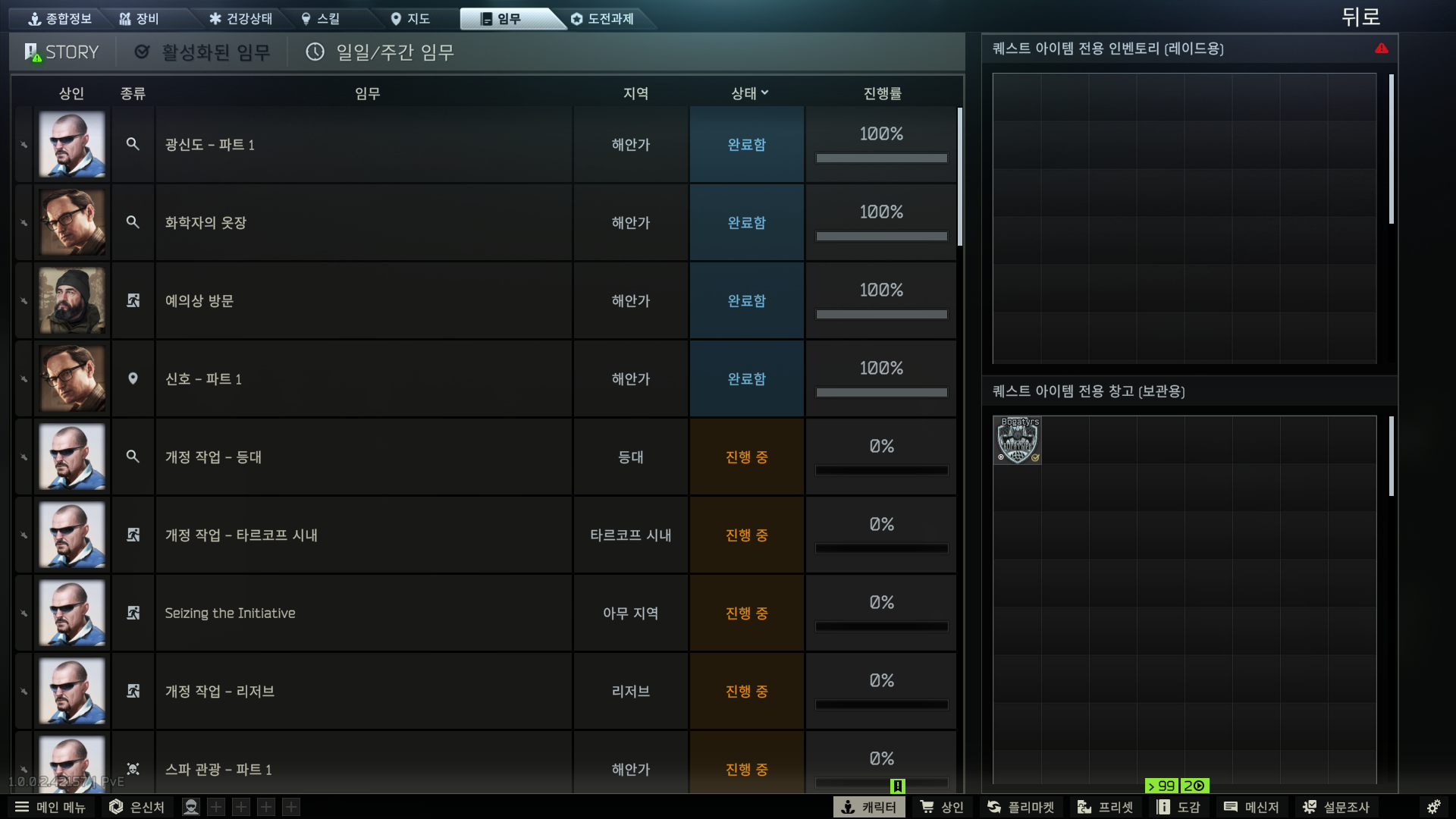 셋업퀘도 완료