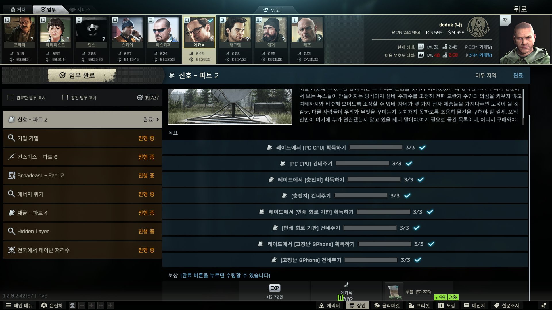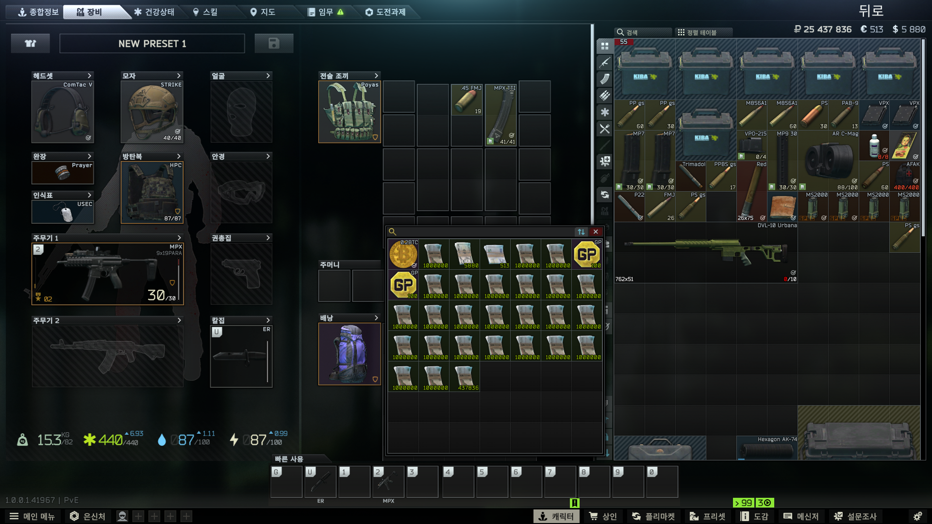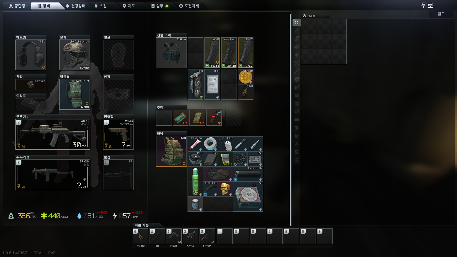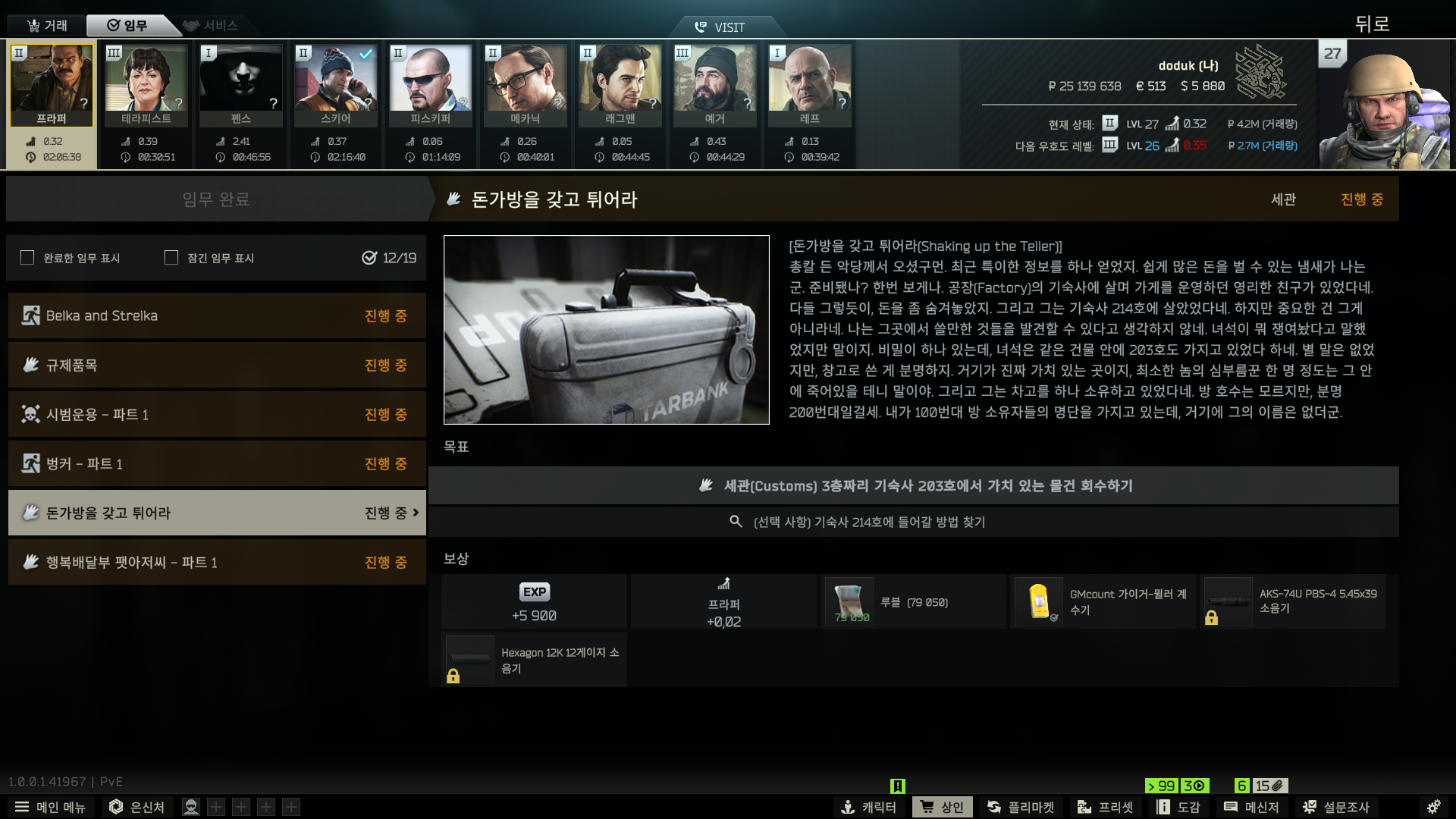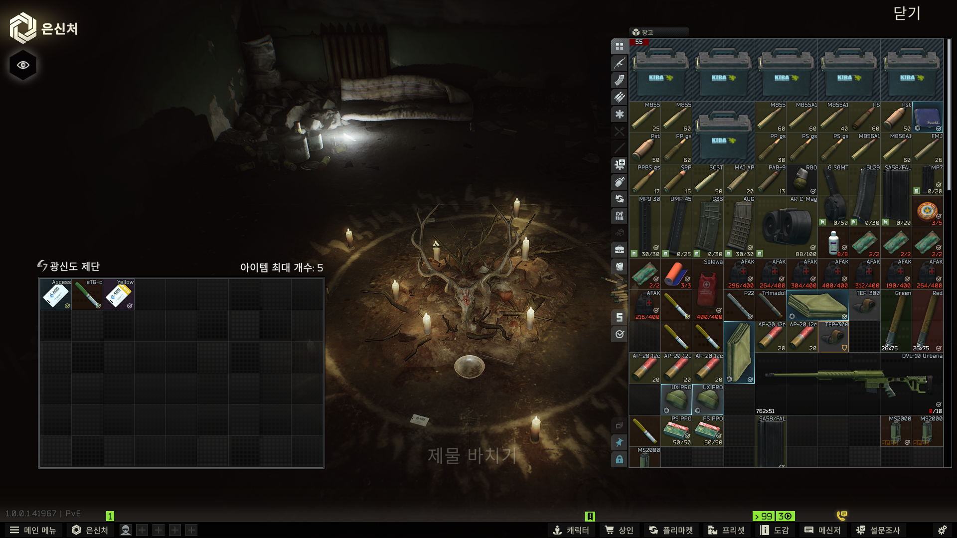 그리고 하이드아웃 창고 업글을 해줍니다